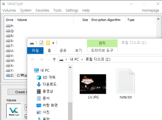 VeraCrypt 툴을 이용하여 복호화를 진행했더니 두 개의 파일이 나타났다.