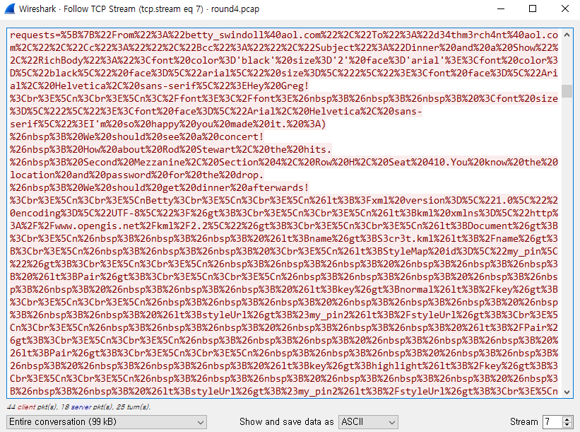문제의 핵심은 Round4 패킷을 분석해서 Gregory에게 제공된 비밀번호를 알아내는 것이다.